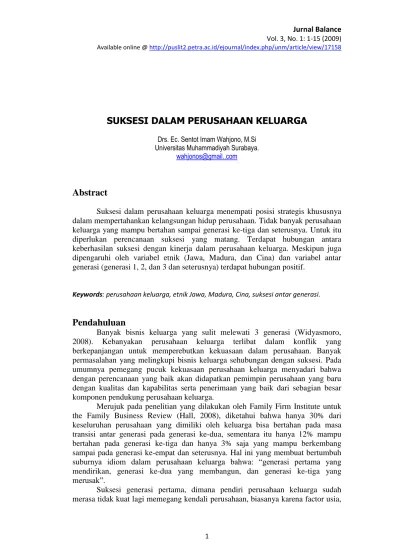 Dan studi kasus singkat tentang tindakan perencanaan suksesi. Berdasarkan sekilas pengertian mengenai perusahaan keluarga menurut. Maka tim internal perusahaan dalam hal ini human capital management . 2009 balance vol 3 (1) petra suksesi dalam perusahaan ke. 1prodi s1 manajemen bisnis telekomunikasi dan informatika,.