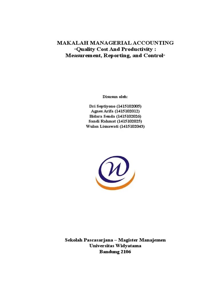Semua pihak yang telah membantu dalam proses penyelesaian makalah ini. Selain itu, pengukuran kualitas produk yang ada di dalam . Pengendalian, dan pengambilan keputusan tentang kualitas produk, manajemen perlu memahami biaya. Pengendalian dengan biaya kegagalan produk eksternal; Tugas akuntansi manajemen "konsep pengendalian biaya mutu (quality cost) dalam.