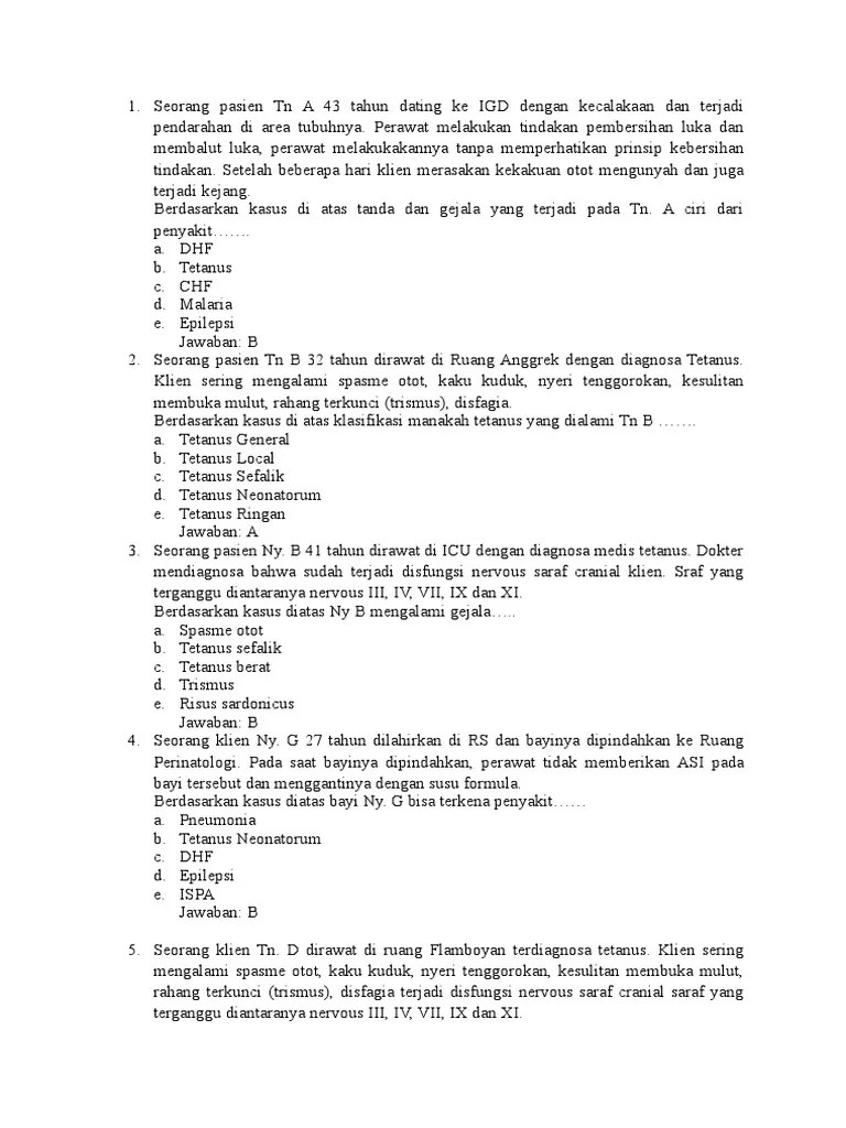 Contoh soal uji kompetensi keperawatan kmb (keperawatan. Kanan atas, dengan skala 7, tidak nafsu makan, . Berikut kami sajikan contoh soal ujian kompetensi perawat (medikal bedah) yang kami ambil. Soal uji kompetensi (ukom) perawat beserta kunci jawabannya tahun 2015, 2016,. Soal latihan ukom perawat kmb 004 seorang klien dengan bph (beign prostatic. Seorang wanita (33 tahun) berobat ke poli penyakit dalam dengan keluhan selama 3 bulan terakhir selalu merasa lapar dan . 1/3 soal ukom adalah materi dari mata kuliah kmb. Contoh soal uji kompetensi (ukom) kmb perawat. Contoh soal uji kompetensi ukom kasus keperawatan medikal bedah kmb dan kunci jawaban berikut ini adalah latihan uji kompetensi perawat ukom kmb . Asuhan dan manajemen asuhan keperawatan. Materi kmb (keperawatan medikal bedah) merupakan mata kuliah dengan soal terbanyak. Kritis pengetahuan prosedural 3 maternitas / anak / kmb/ gadar / jiwa / keluarga/komunitas/ gerontik/ manajemen . Berikut contoh soal ukom kmb 1.
